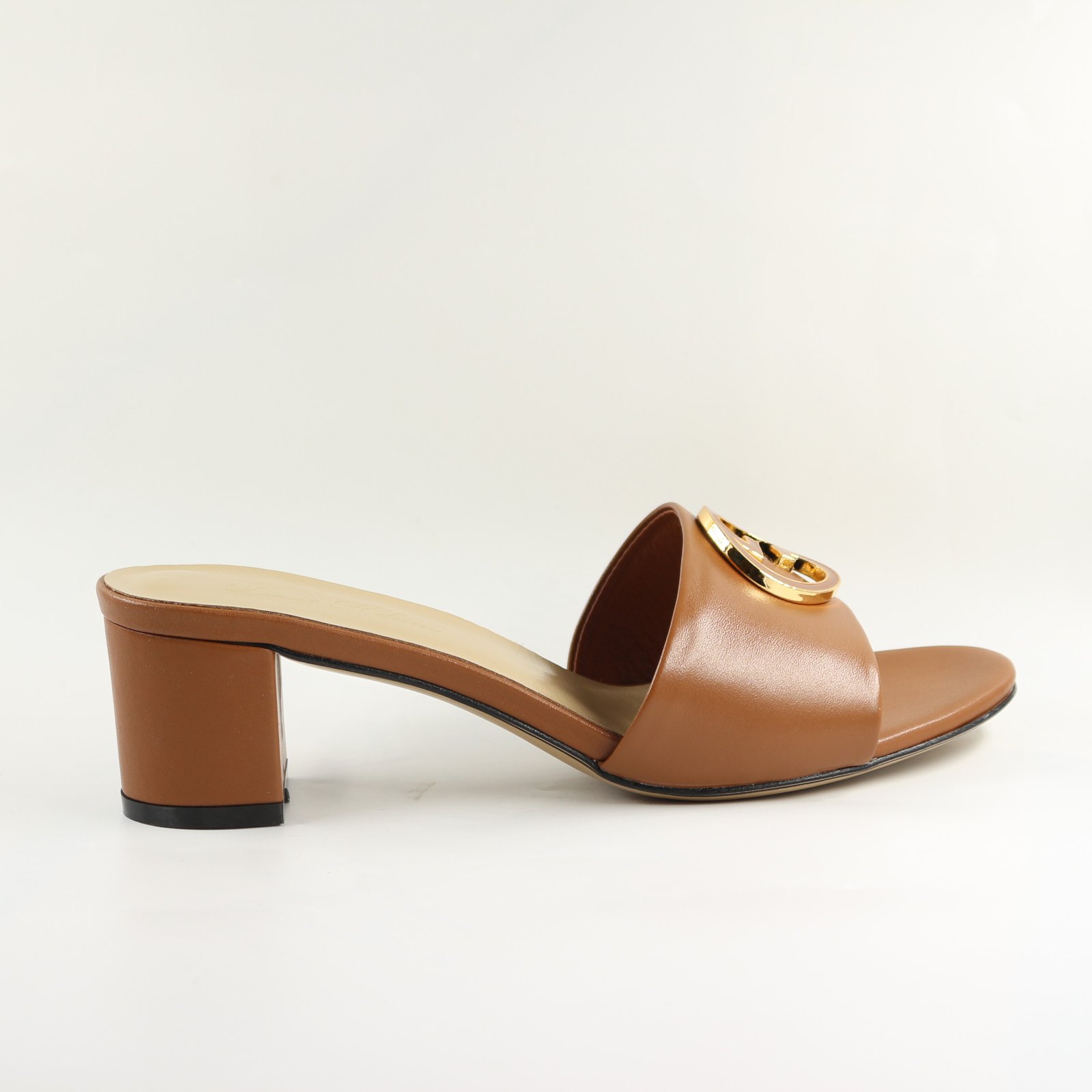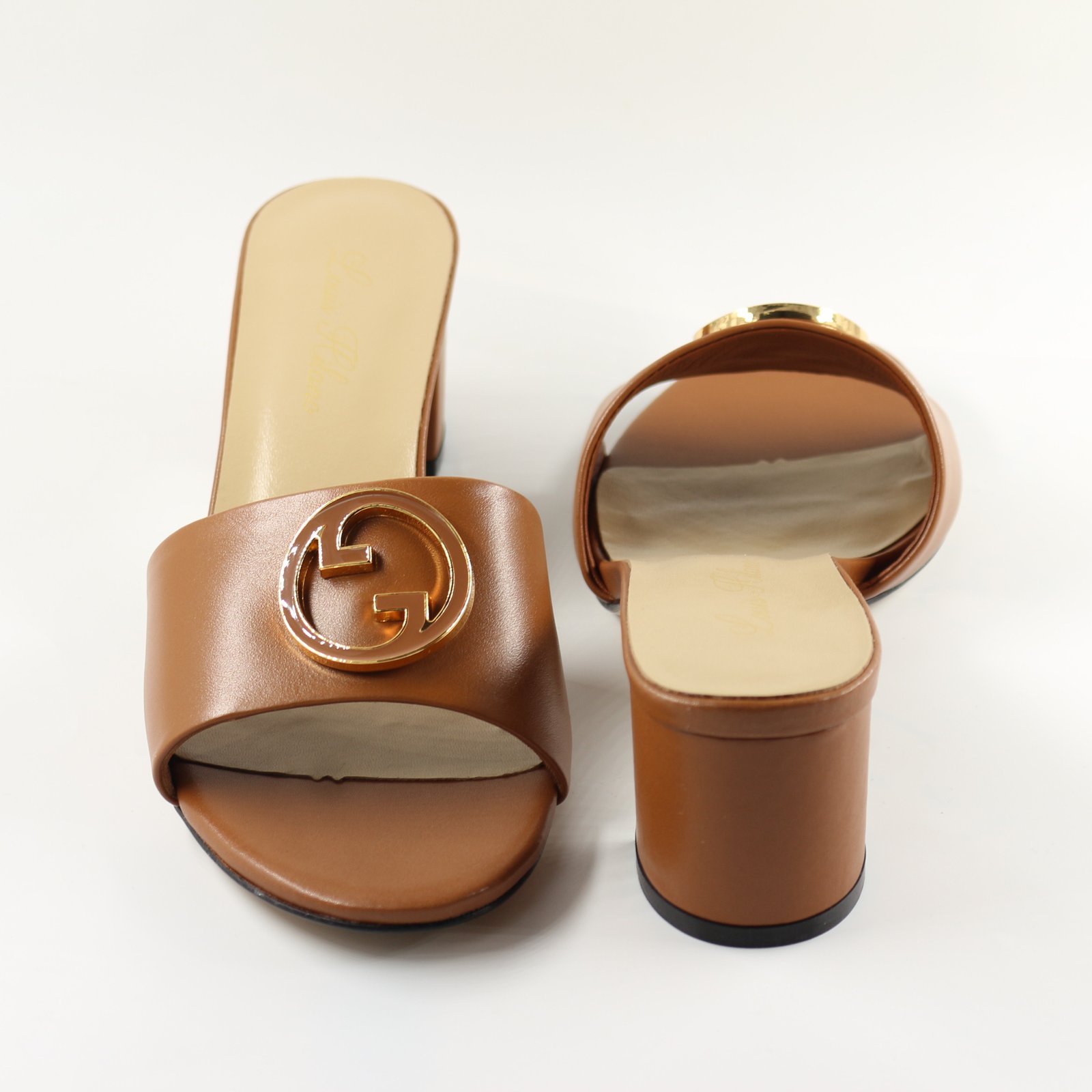 Brown Block Heel Slip-On Sandals